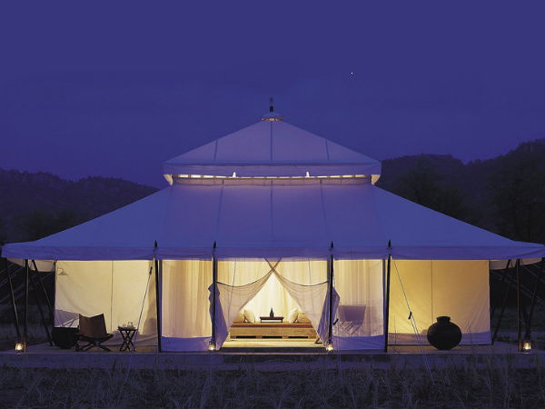Located right on the banks of the popular landmark in the beautiful city of Udaipur, the Lake Pichola; Raas Leela Luxury Camps make for a very interesting tent stay in the city. It is known to provide one of the best views of the lake. They offer eight luxury tent accommodations on a raised platform with traditional decor and the air-conditioned cottages are weather-proof. The rates start at INR 5,500 for a night's stay. Enjoy this vibrant and classic tent stay with friends or your special someone for an unforgettable journey to Udaipur.