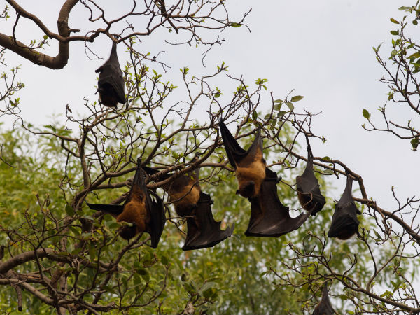 Fruit Bats hanging on the trees at Bharatpur.