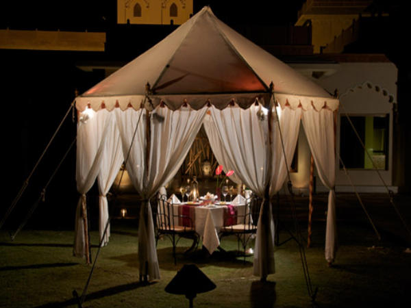 The inspiring tranquility of the surrounding environment makes it an ideal hotel for romance. If anything draws your attention, it can only be the dancing peacocks. The pool side venue with mesmerising natural view invokes romnticism. The embellished suites with arches and frescos will transport you to bygone era of grandeur and splendour and also to the world of royal romance. You can even plan a romantic evening as a surprise gift.