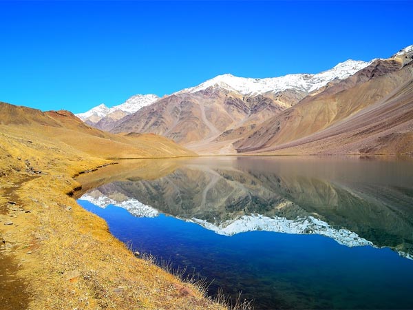 This high-altitude lake located in Himachal Pradesh is one of the most spectacular attractions of Spiti Valley. Perched at a fearsome altitude of 14,100 ft, Chandratal Lake is an untouched, serene beauty that is flanked by sky-high mountains capped with snow.